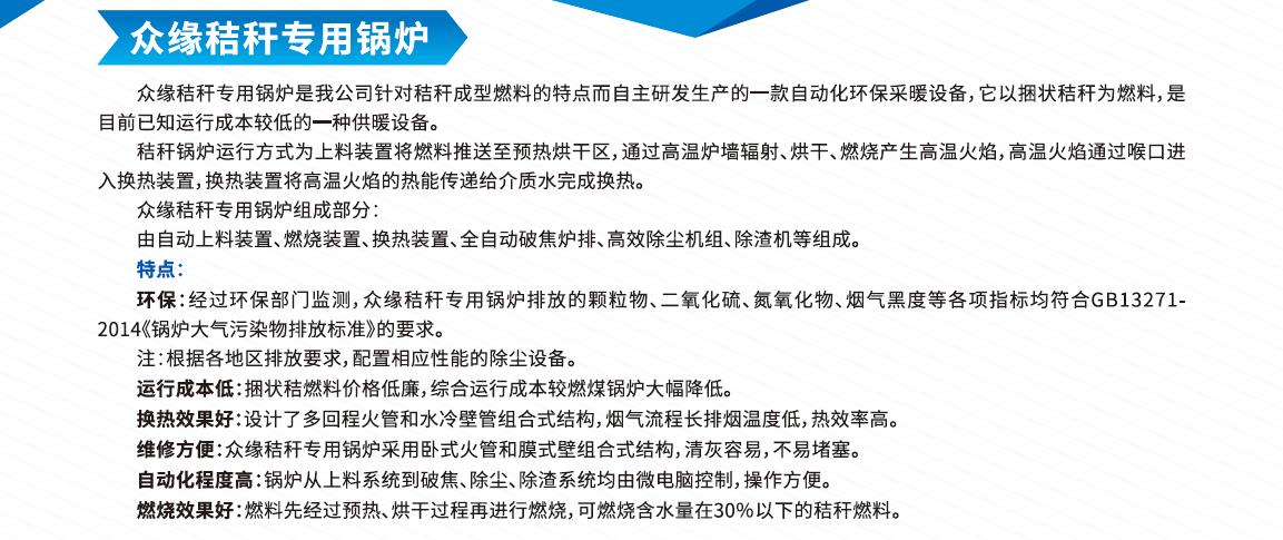 辽宁众缘节能锅炉有限公司是一家国家定点B级锅炉制造企业,集研发、生产、销售及售后服务于一体的大型企业。主要产品有:秸秆气化锅炉、燃油燃气锅炉、电锅炉、半导体锅炉、生物质锅炉、有机热载体锅炉........